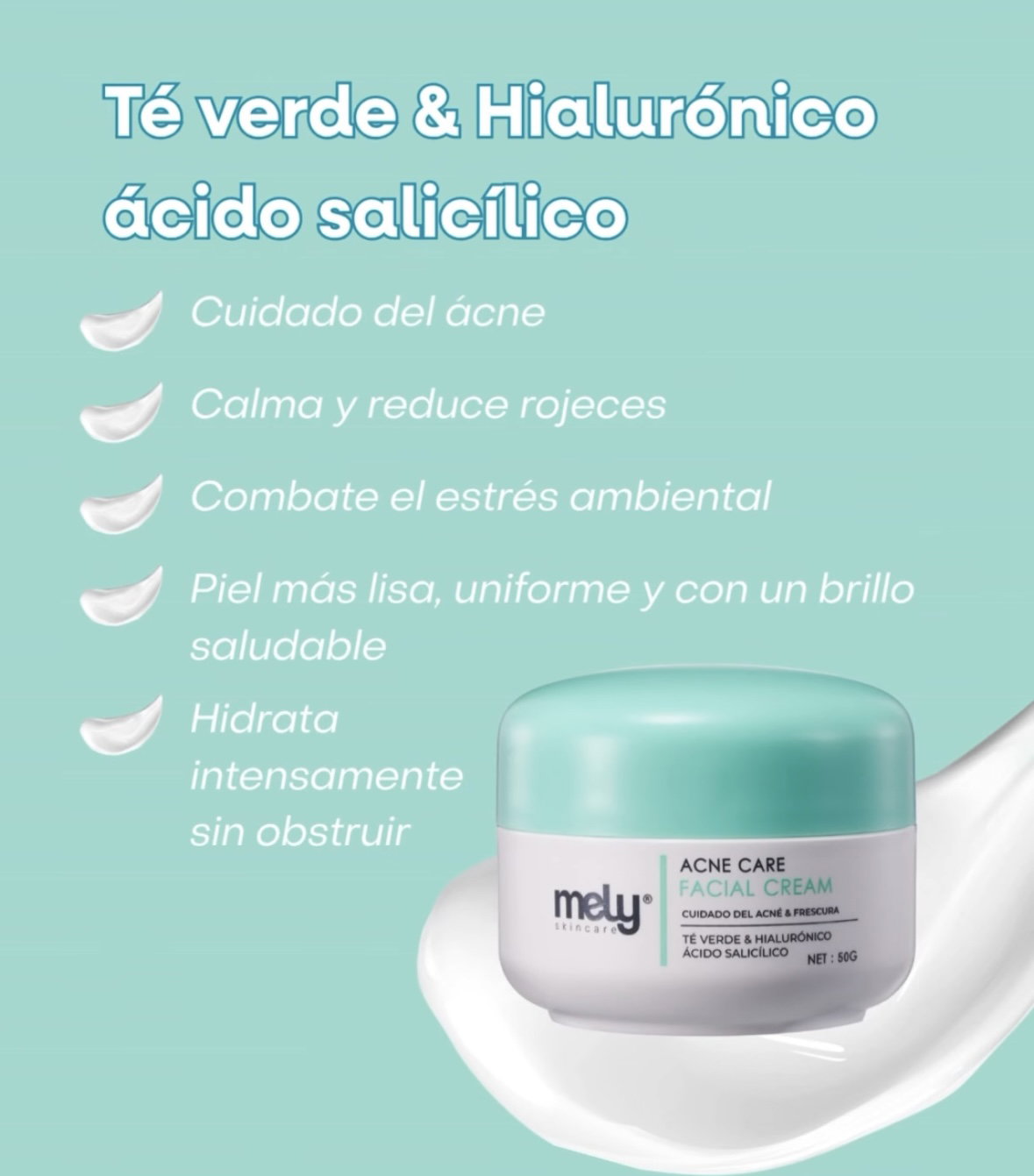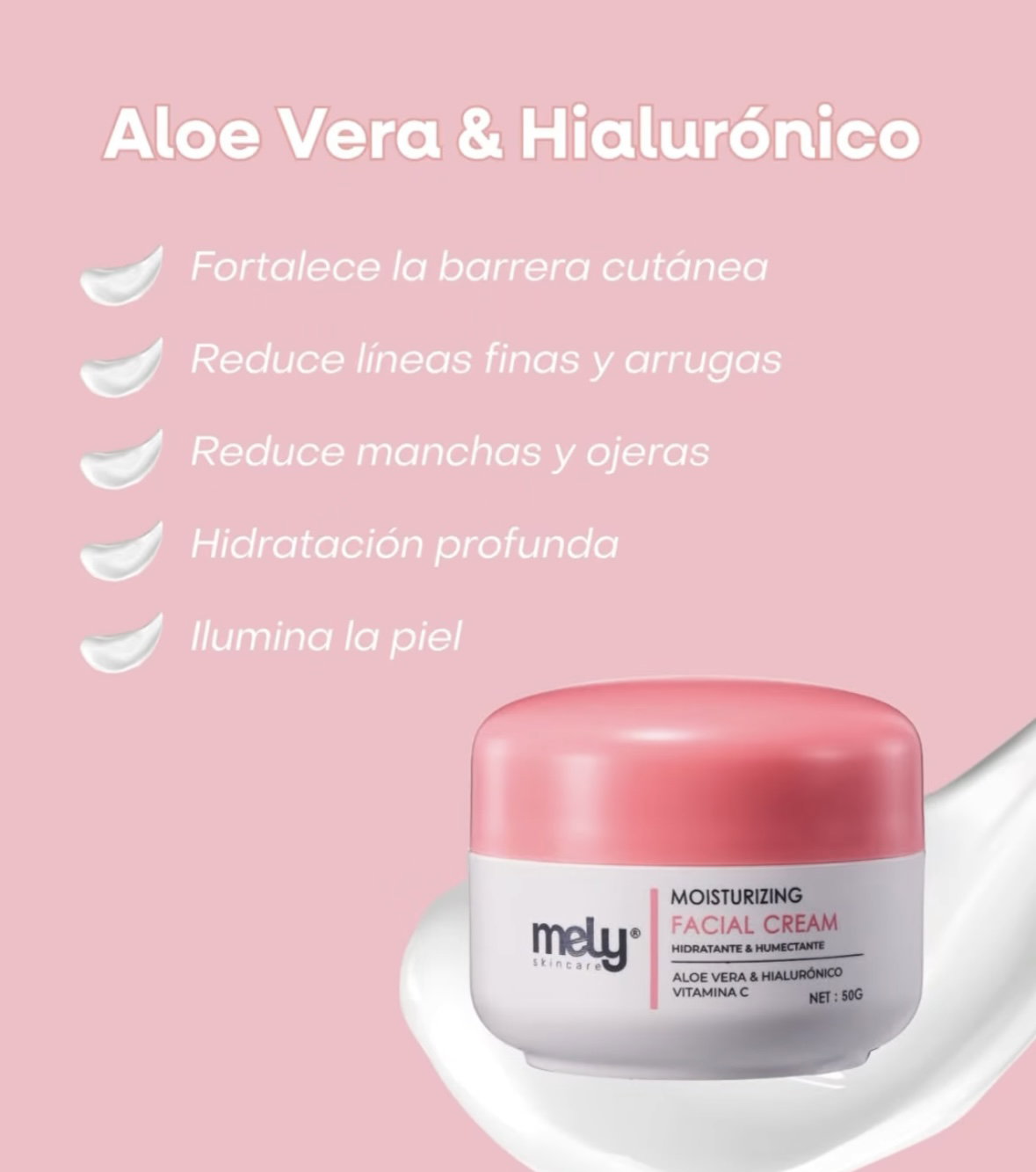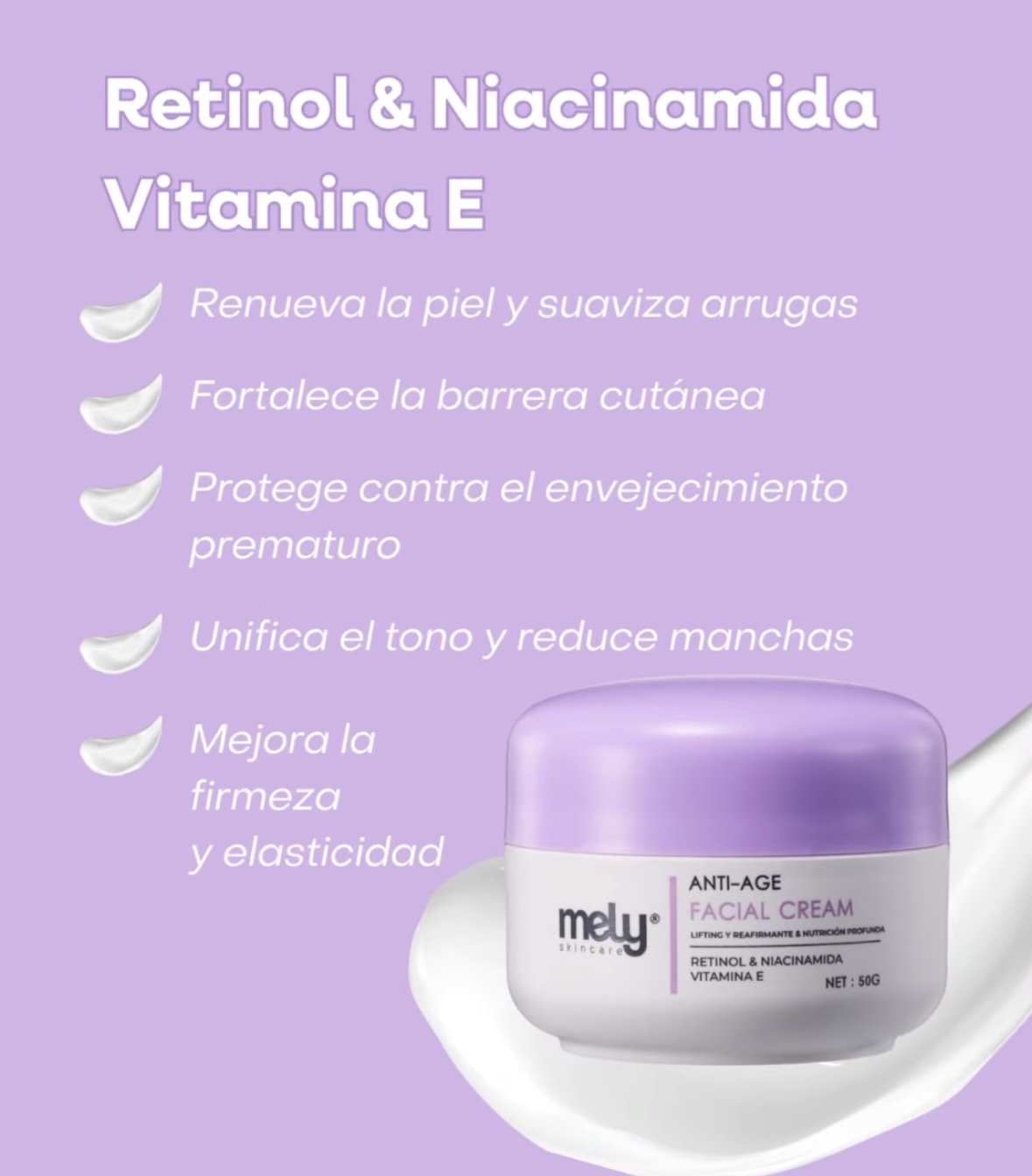 Cremas faciales mely, hidratante, anti-age, acné care